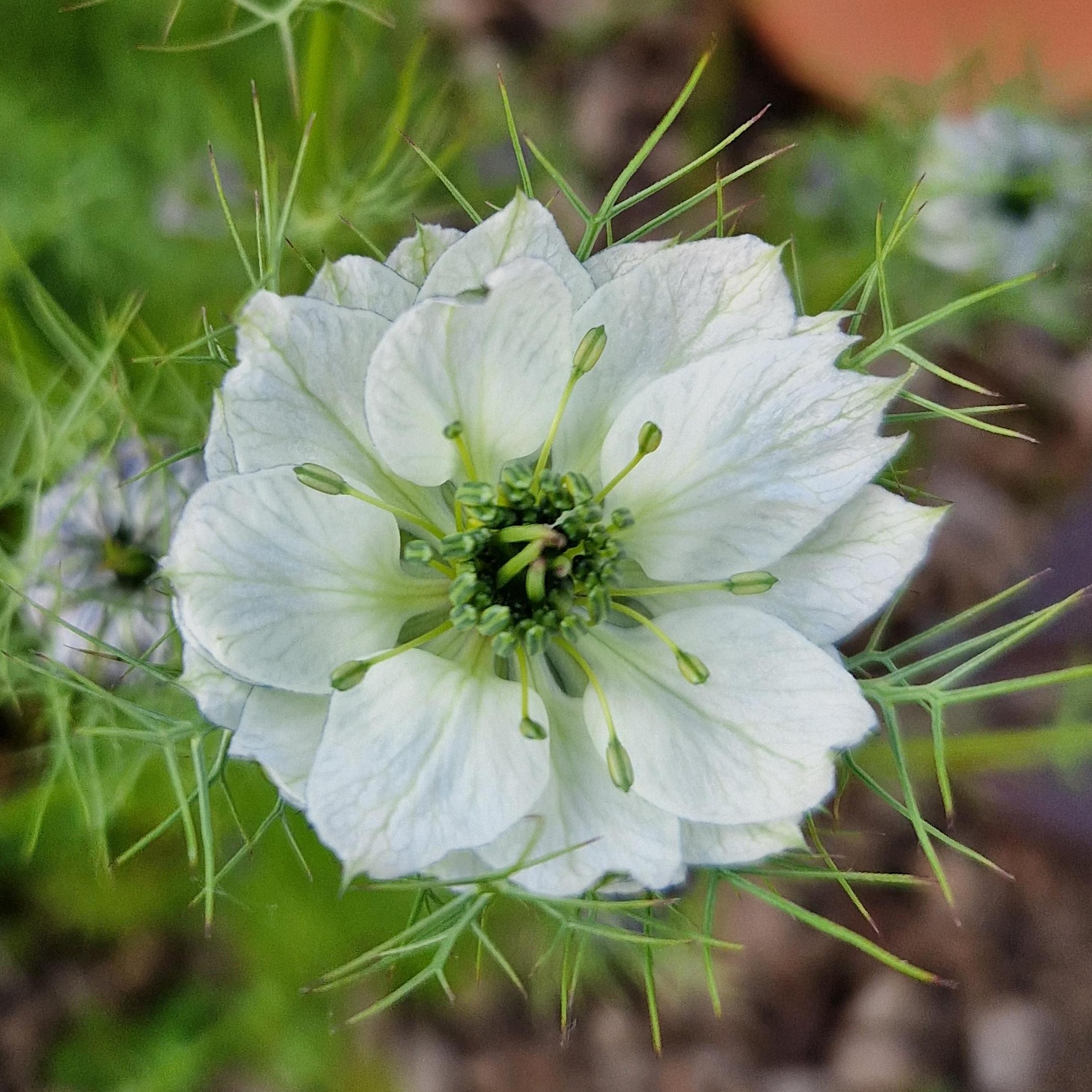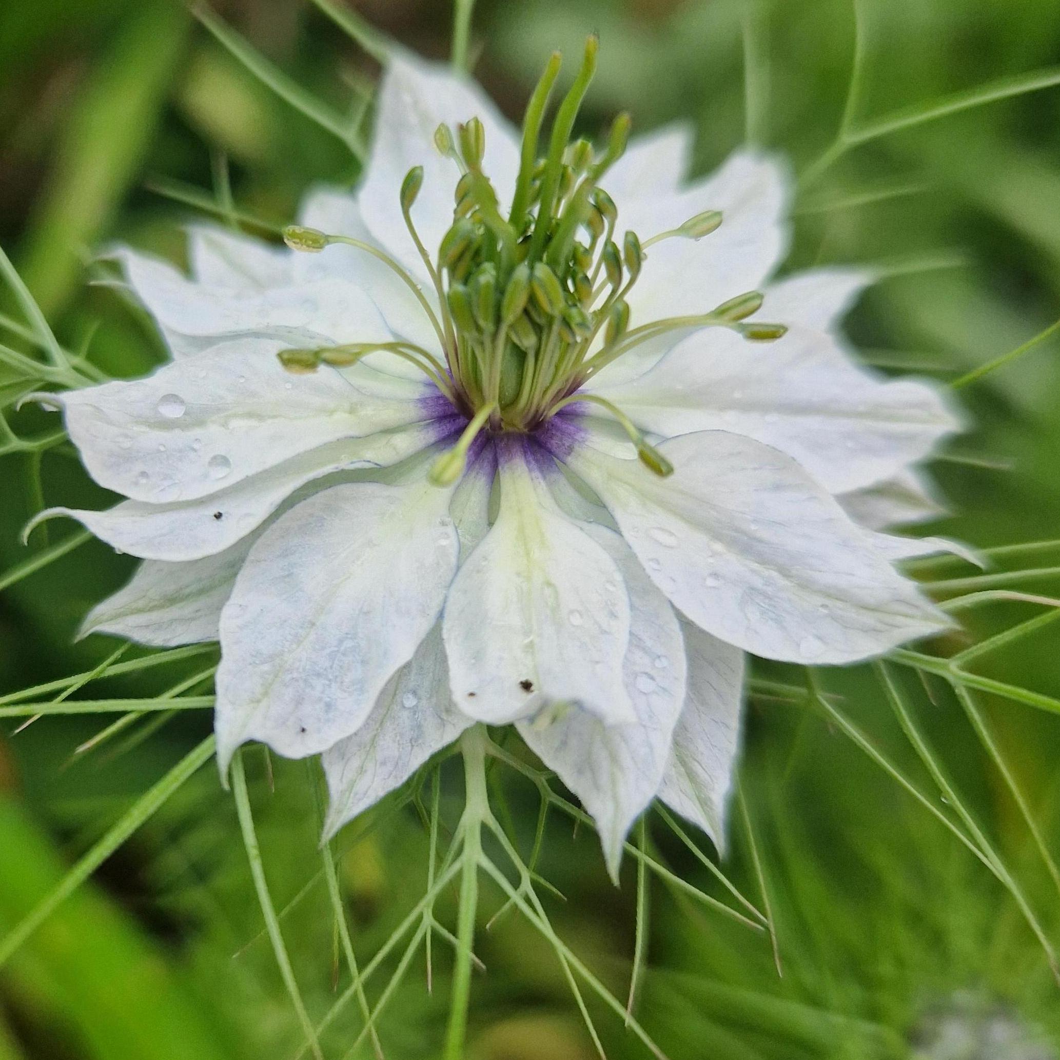 Love-in-a-mist, Devil in the bush, Bird's nest, Blue spiderflower, Blue crown, Chase-the-devil, Jack in prison, Jack in the green, Katherine's flower, Kiss-me-twice-before-I-rise, Lady in the bower, Love-in-a-puzzle, Love-in-a-tangle, St Catherine's flowe