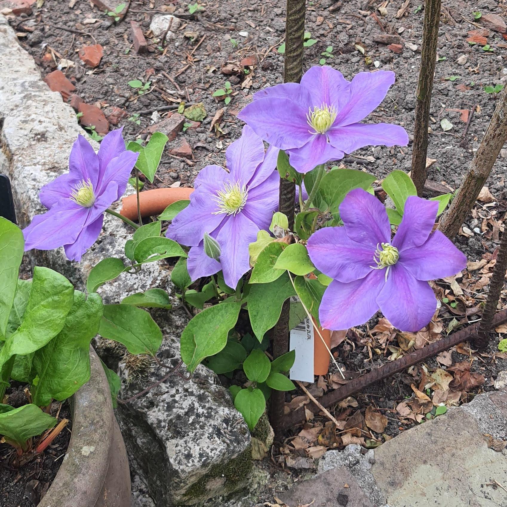 Plant in spring or autumn. Choose a location where the head of the clematis is in the sun (or partial shade) and the roots are in shade. Keep in mind that the colours will not be as intense if it is placed in full sun, but the flowering will be more abundant. It prefers relatively moist but not waterlogged, deep, well-worked, well-drained, rich soil. Plant at a depth of 5cm (2in), with the root ball placed diagonally or even horizontally on the soil. To create the shade needed at the base, place a flat tile in front of the stump or use ground cover plants. Cover the base with a small mound of soil to encourage the emergence of new shoots.