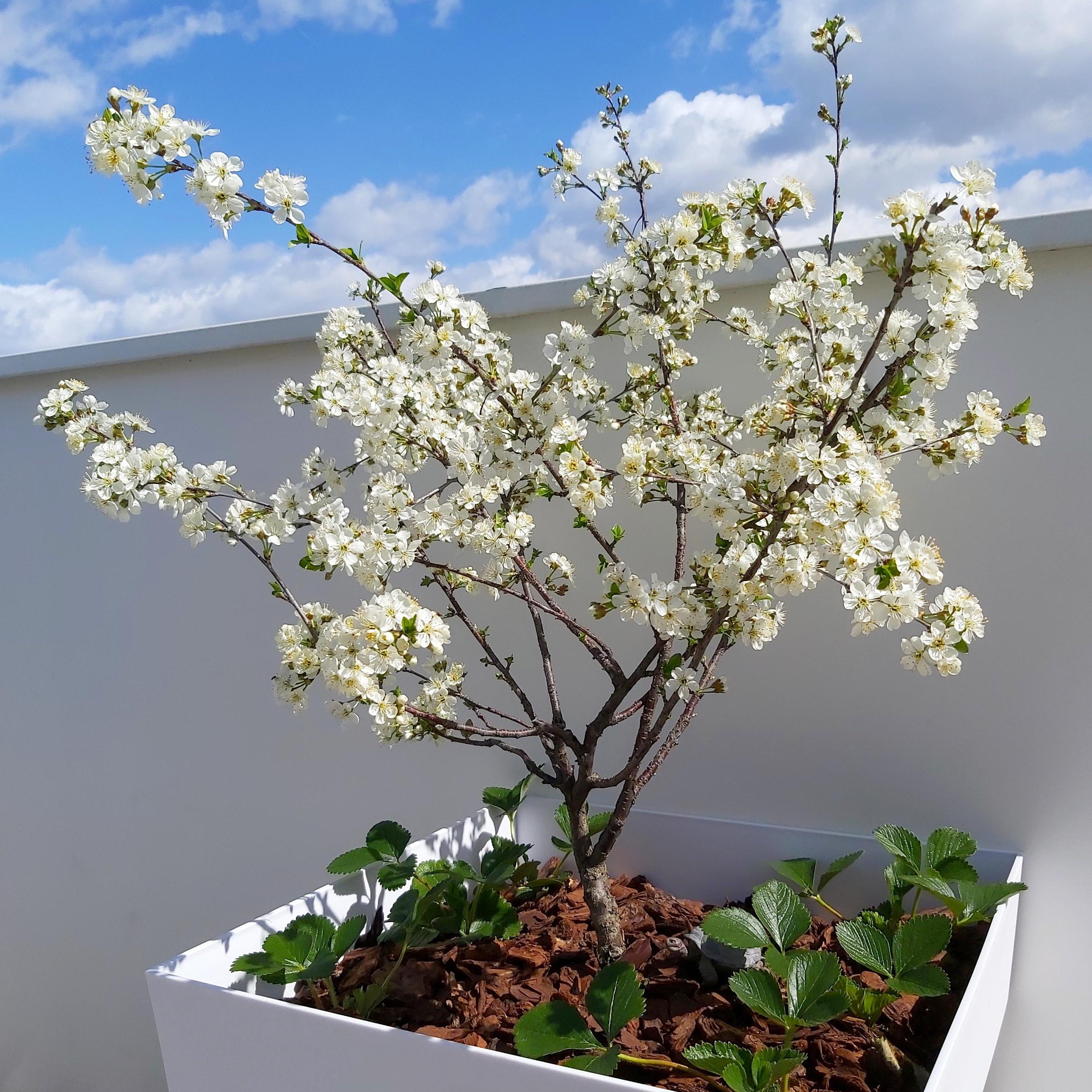 Cultivated since 2018, I'm going to resign myself to pulling it out... A shame, it's true that the tree is truly dwarf. But the branches, covered in many flowers in spring, have once again mostly ended up dried out, attacked by fire blight. And the few cherries that ripen are sour; less tasty than those from my morello cherry tree...