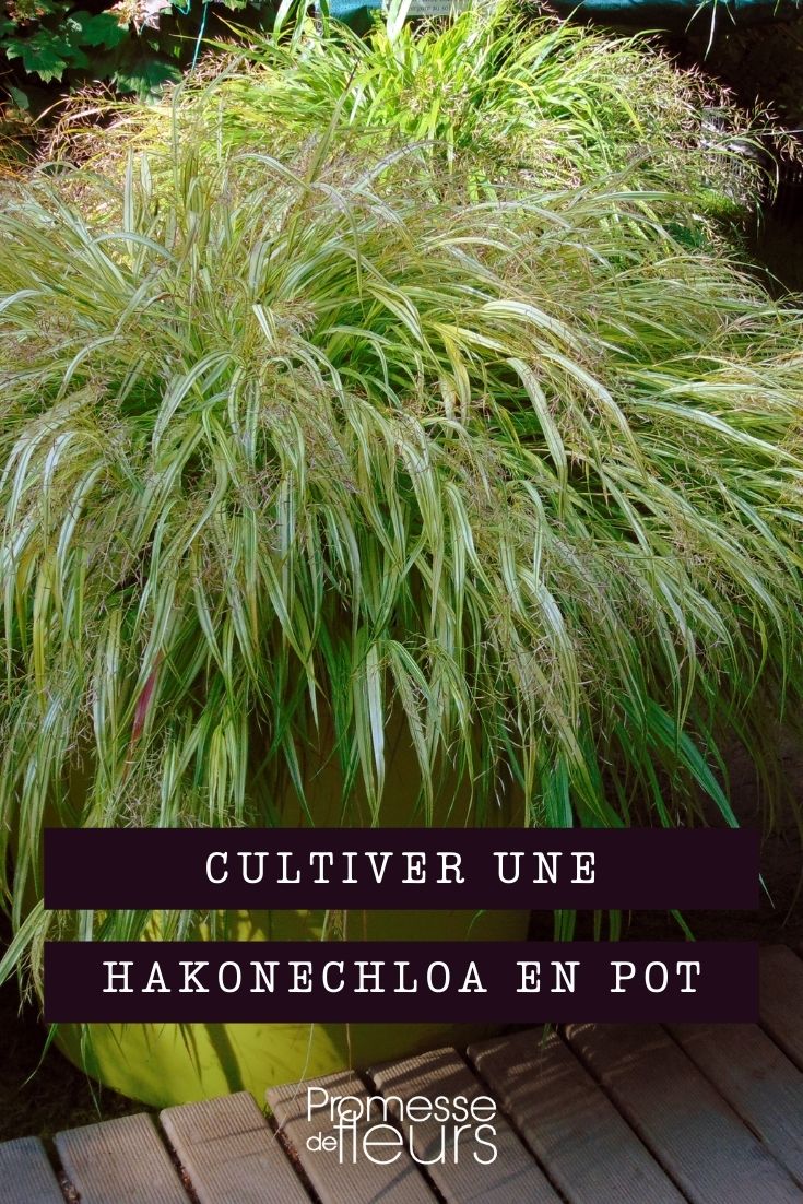 Hakonechloa, also known as Japanese grass due to its origins, is a stunning perennial grass. Once established in the garden or in a pot on a terrace, balcony, or patio, it becomes fuller each year, but requires patience as its growth is slow. This “disadvantage” turns into an advantage for beginner or contemplative gardeners who enjoy a beautiful setting without needing to intervene often. Preferring partially shaded to shaded locations, with neutral to acidic and consistently moist soil, it is an essential woodland grass. Even if you don’t have a garden, or if your soil isn’t suitable, adopt it in a pot to enjoy its soft and elegant habit, its changing and decorative foliage, and its minimal maintenance. Find all our tips for growing Hakonechloa in a pot, maintaining it, and dividing it.