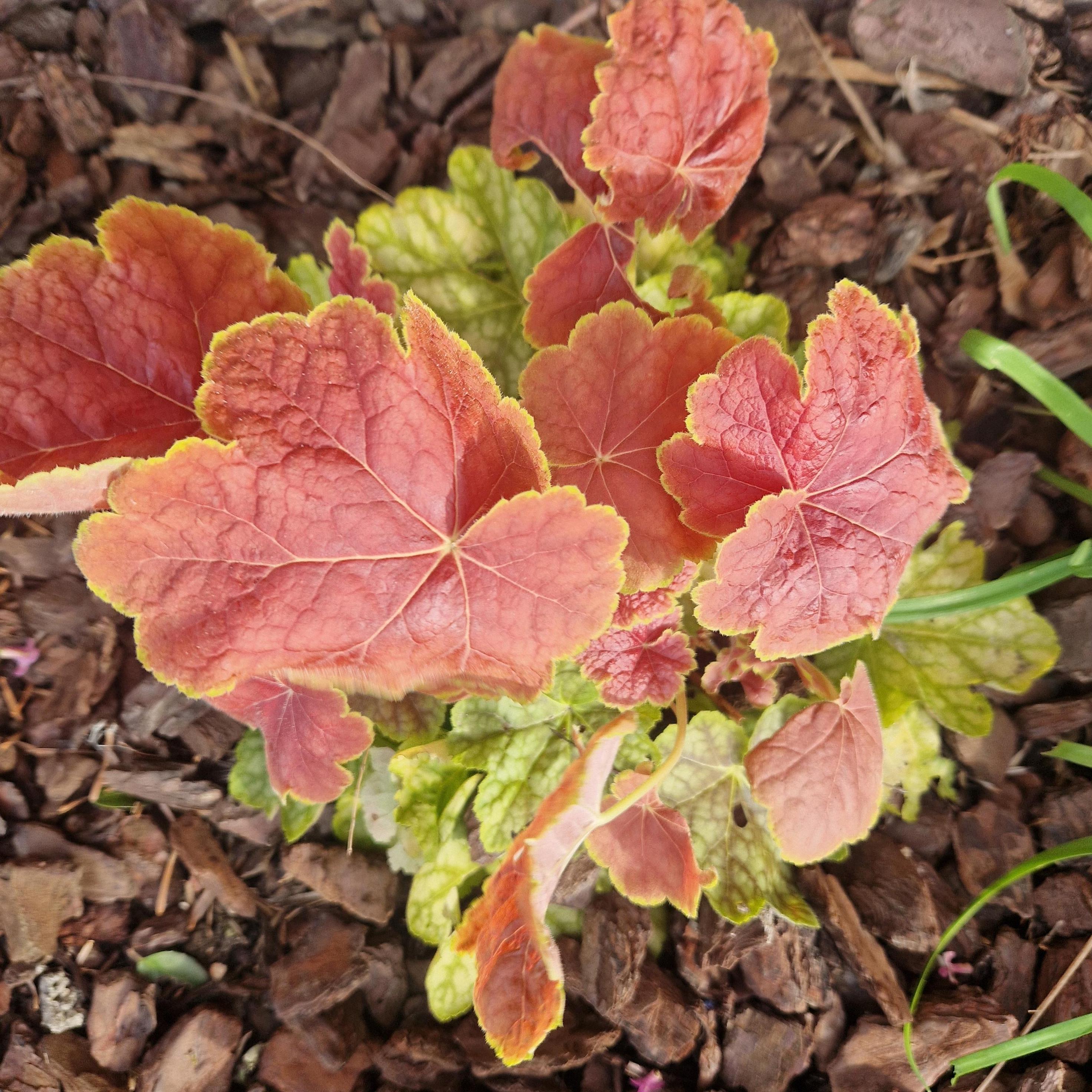 Present in our European gardens for a long time and often inseparable from grandmothers' gardens, Heuchera was rediscovered at the end of the 20th century thanks to hybridization work that revealed an infinite variety of foliage colors. The basic colours are already numerous: from green to black, including pink, red, and brown, each cultivar is unique. Moreover, the lamina is often veined with a deeper tone that accentuates the contrast of colours. Finally, the overall appearance evolves with temperatures, covering a very rich range of colours, sometimes different from one leaf to another. It is impossible not to find the "perfect" palette, even if you have something very specific in mind!