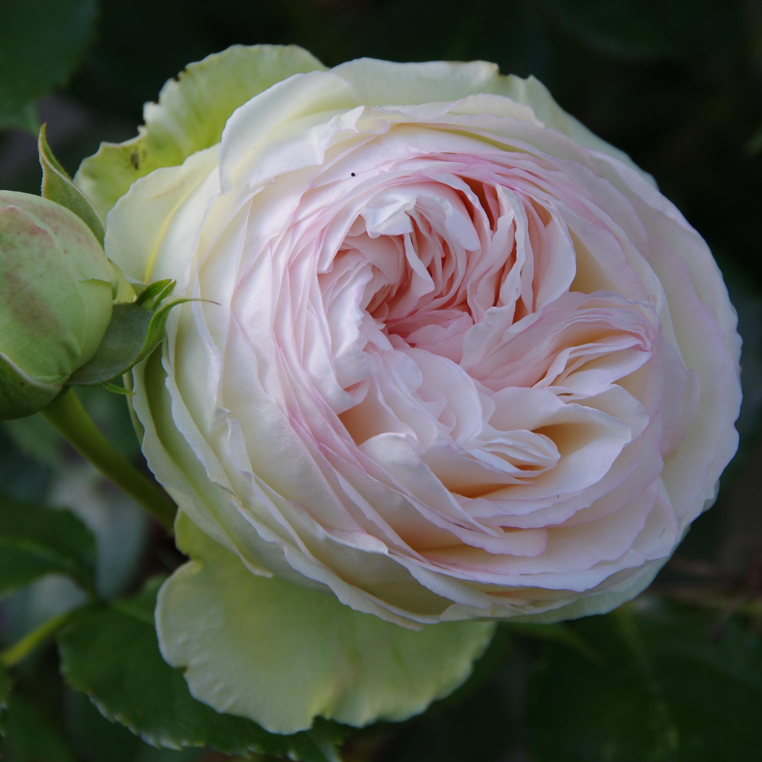 Rosa 'Palais Royal', also known as 'Meiviowit', is a Meilland creation from 2005. It is a natural mutation of the famous and acclaimed 'Pierre de Ronsard' rose. Similar in behaviour to the latter, it differs in the colour of its old-fashioned roses: they are a milky white, enhanced by ochre and pink reflections on their edges, clearly visible during cool and humid periods. This climbing rose produces 4 to 5 waves of flowers between May-June and October-November.