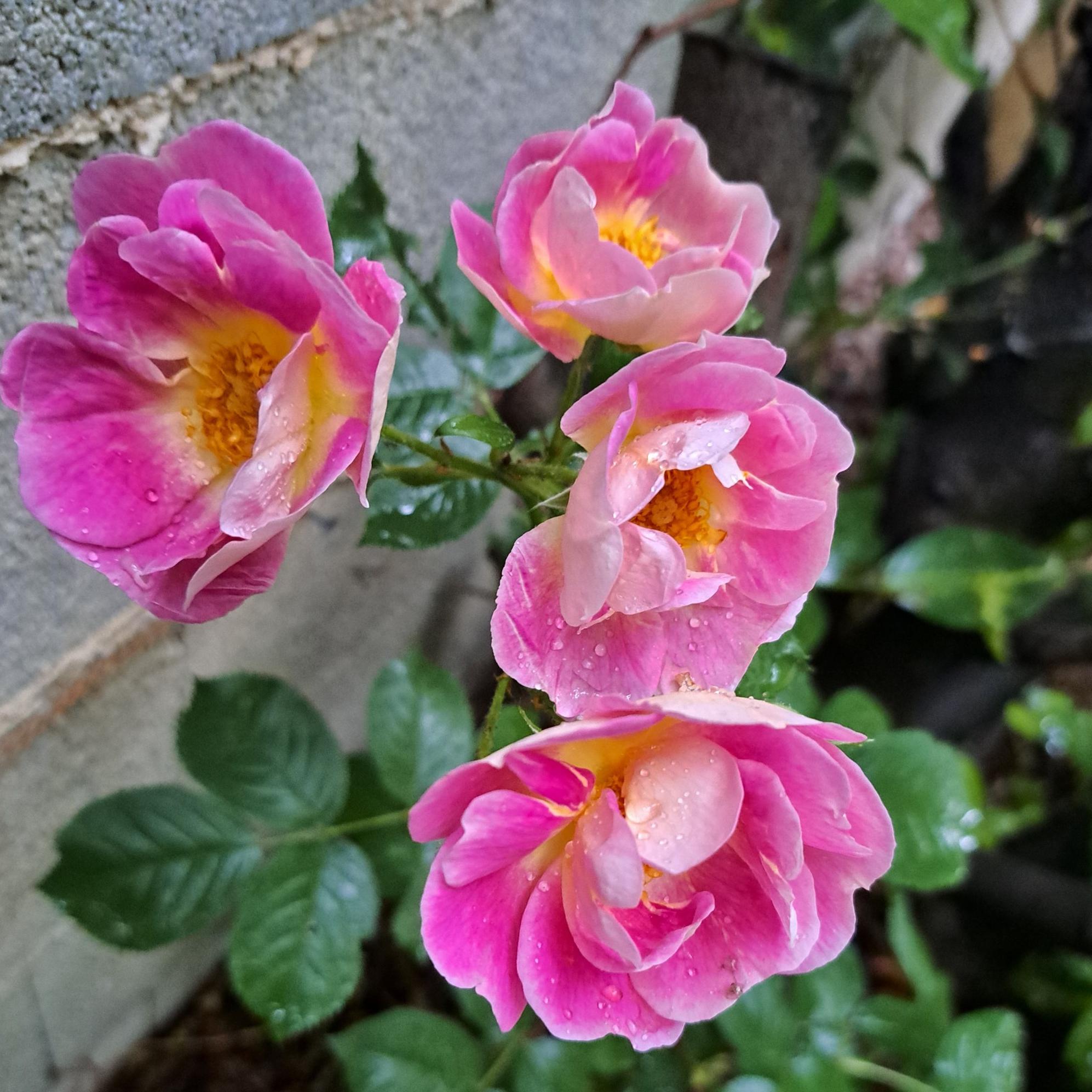 Groundcover shrub roses quickly cover the ground thanks to their spreading habit, while offering abundant and regular flowering throughout summer. 'Weg der Sinne', obtained by the German rose breeder Kordes in 2013, obtained in 2015 the highly demanding ADR label awarded in Germany to the most cold and disease resistant rose varieties. It is a plant with exceptional natural resistance to diseases and parasites and an almost constant decorative effect with harmonious, dense and well-branched vegetation. The flowers of this rose are gathered in terminal clusters, the same as the polyantha rose, an old hybrid resulting from Rosa multiflora and Rosa chinensis. It has a spreading dome shape, reaching about 60 cm (24in) high in a few years, with a width of 80cm (32in). The 6 to 8 cm (2 to 3in) diameter flowers are formed by 7 to 8 broad and wavy petals arranged in well-opened cups around a cluster of yellow stamens. They are a pink-purple-violet, with a pale yellow base. They have a light fragrance. This variety develops deciduous, quite deep green and very elegant foliage.