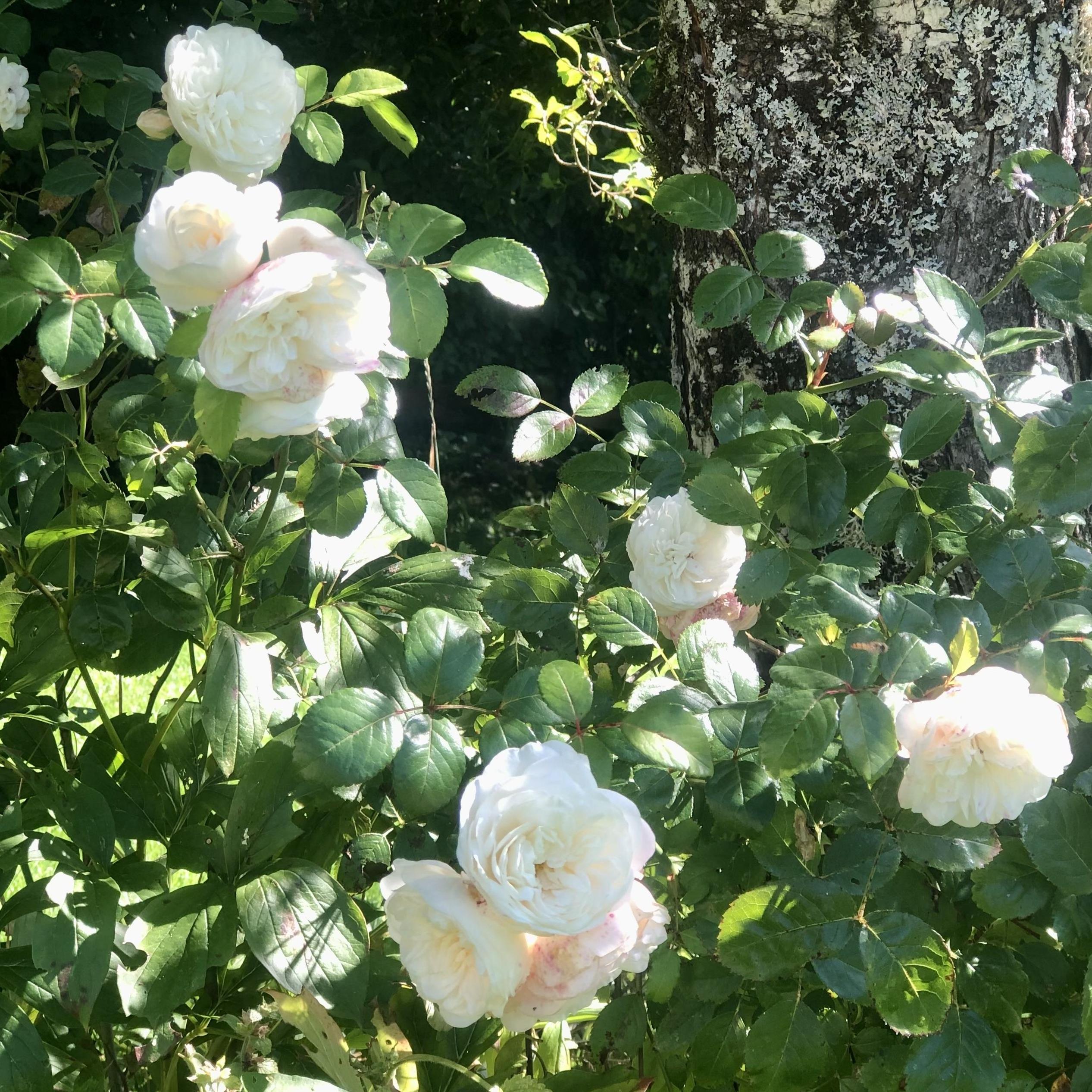 The floribunda roses allow for beautiful small hedges, planted mixed along the terrace or in small shrub beds. Combine them with ground cover roses, abelias, nandinas, or caryopteris, for example. They are good companions for foxgloves and tall gypsophiles. The modest size, generosity, and resistance of 'Marina Picasso' make this rose an ideal candidate for all gardens, even small ones and container gardening. It can be used in various ways according to each gardener's preferences: in a rose bed, alongside other white varieties ('Marie Pavie', 'Swanny'), as well as red or orange. Like all roses, it looks stunning mixed with easy-care plants such as perennial geraniums, catmints, or asters. And its roses are beautiful in small bouquets or centrepieces, along with double and white clematis flowers, for example.