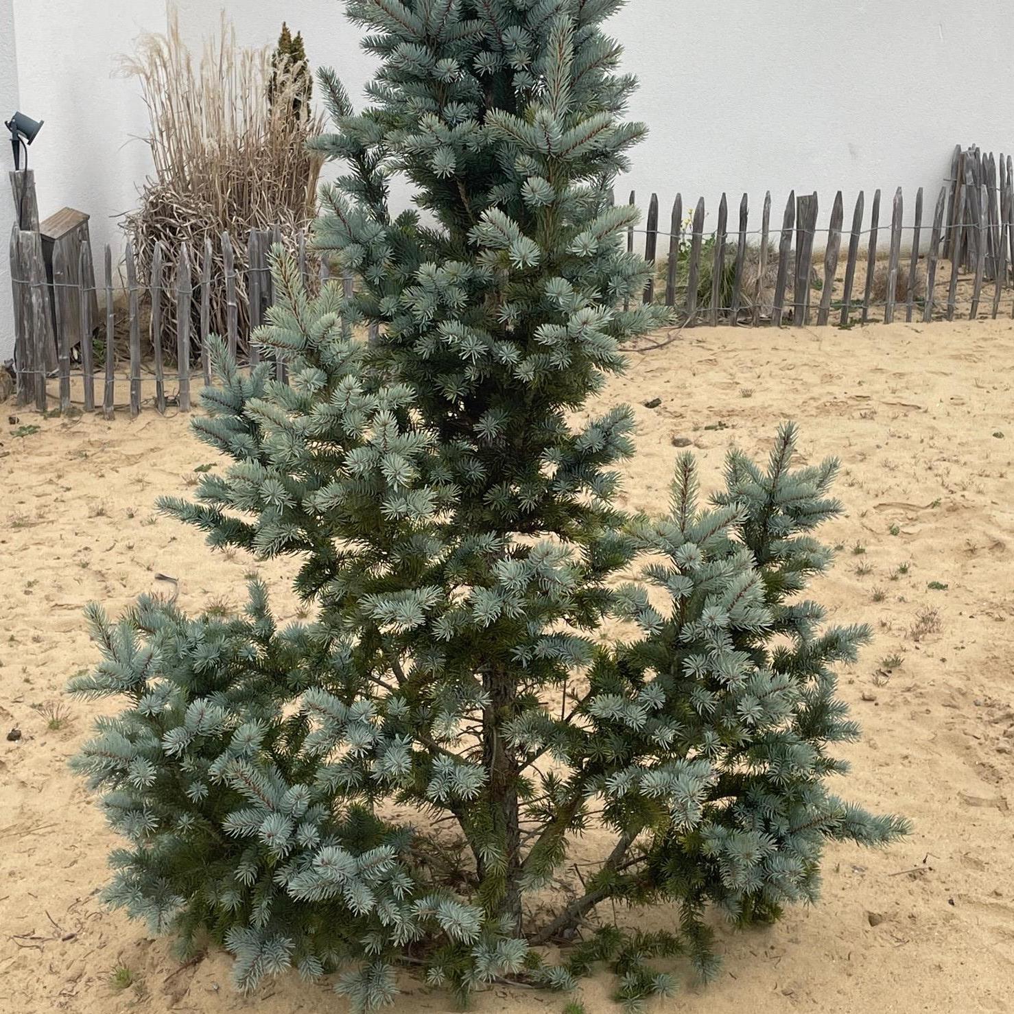 Originating from the west coast of the United States, and the Rocky Mountains of North America, up to Canada, the Picea pungens, also known as the Colorado blue spruce or blue spruce, is a hardy evergreen conifer belonging to the pine family. In its natural environment, it grows slowly, presenting an elegant and regular conical habit with very layered horizontal branches. This tree can reach a height of 25 to 40 m (82 to 131 ft 2 in) and tolerates limestone soils and some drought.