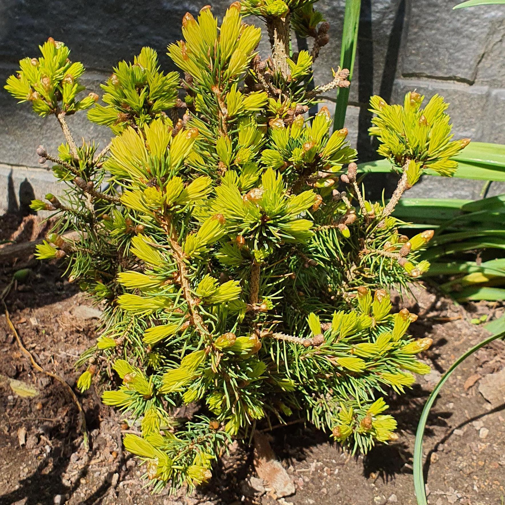 My spruce is in its second year, I waited before leaving a review, and I'm very satisfied with it. Although in its first year I was skeptical about the color, it arrived in its pretty light shade, and this spring, it took on a lovely color and even grew a bit. What I love about this bush, besides its color, is the softness of its spikes, and it won't grow too large at ripeness. No regrets about this purchase—I even bought it again and had it delivered directly to a friend for her birthday, and she's very happy with it too. A big favorite for me...