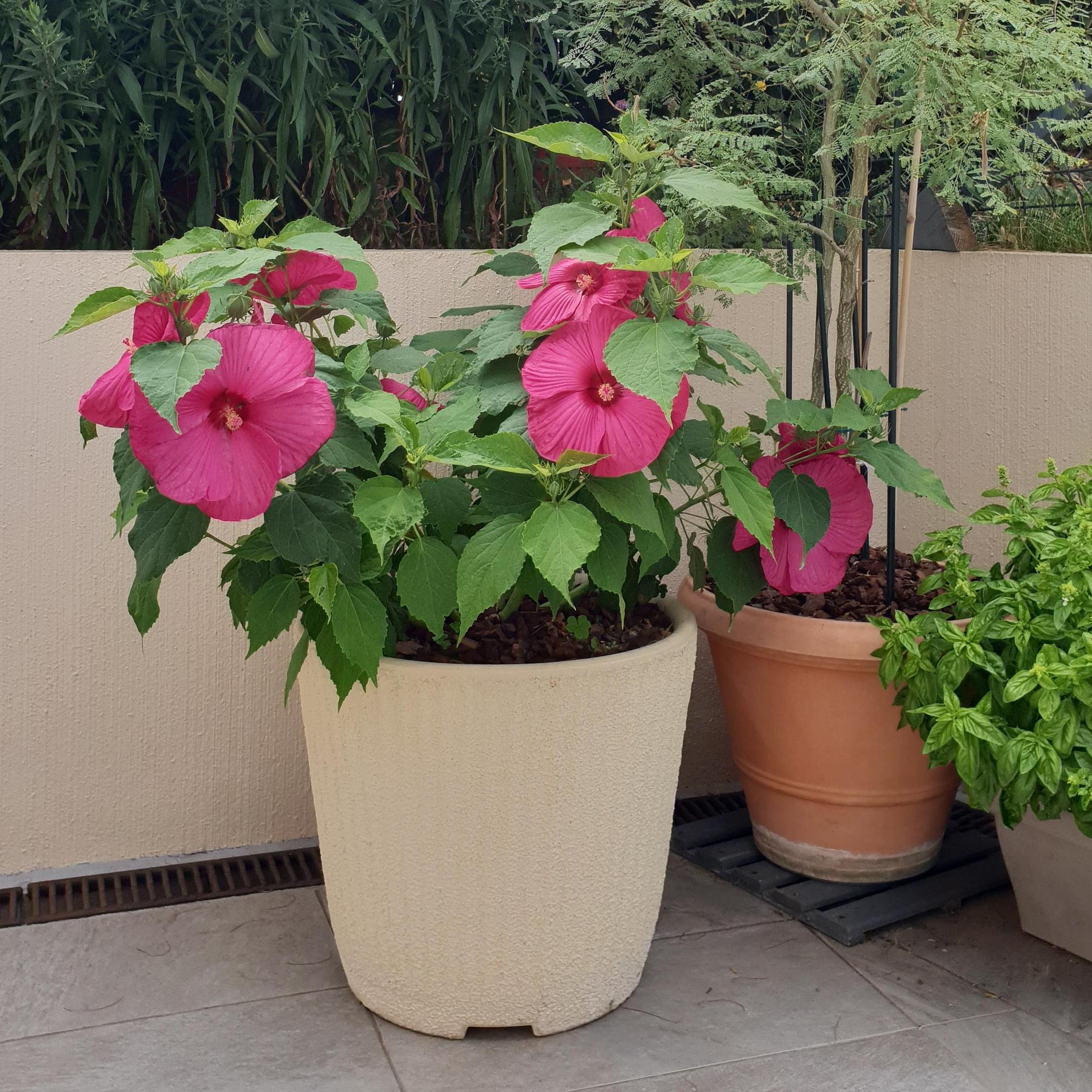 This pink hibiscus, which replaced a red one that didn't take, is an absolute marvel and has produced magnificent flowers. I hope it will hold up well over time, so I'm thinking of ordering another one in a different colour in the spring. Sincere regards.