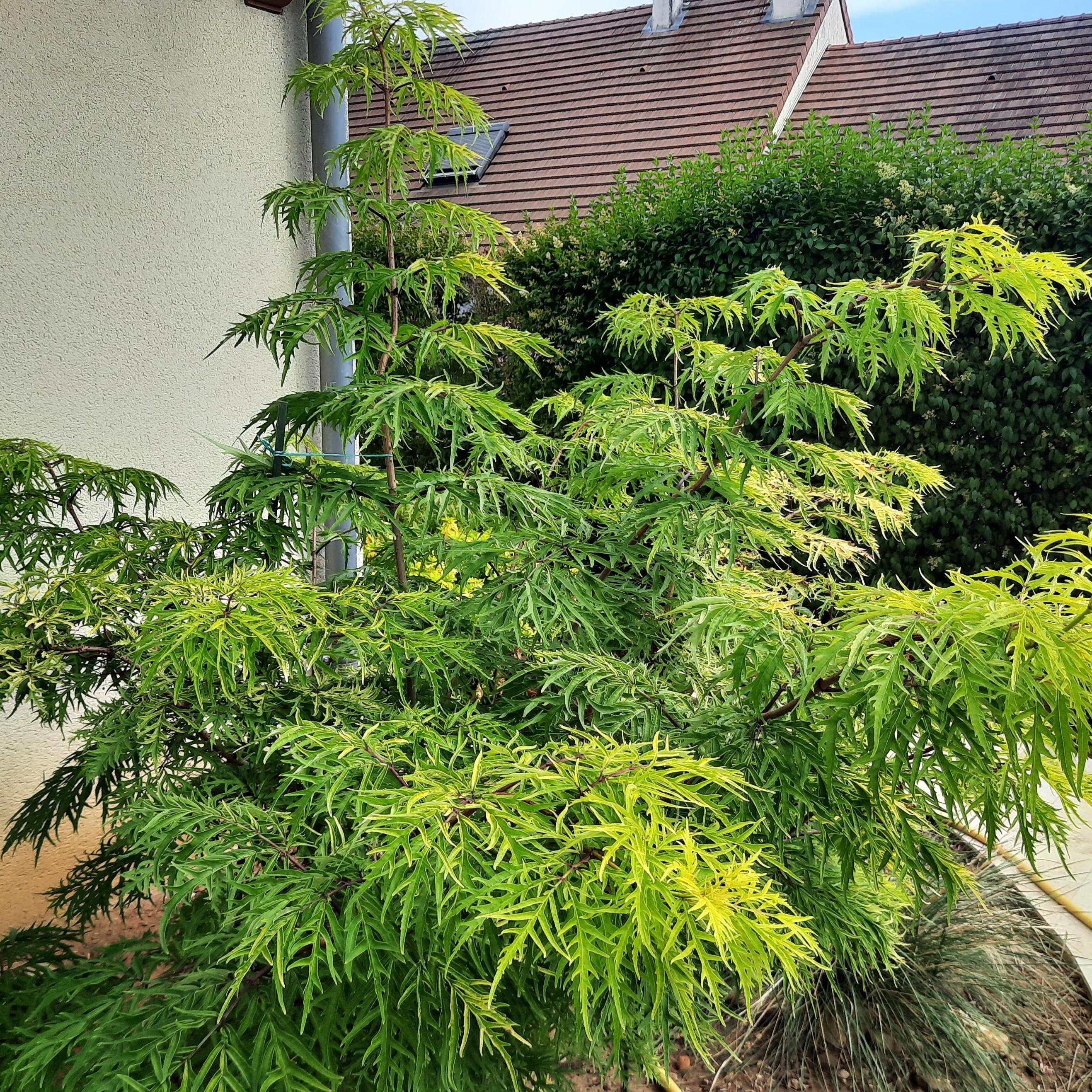 The 'Golden Lace' Elderberry is a gem for small gardens or a terrace. Place it in the centre or foreground of a bed of smaller shrubs, or near an entrance or window, or alongside a path. You can also keep it in a large pot or container for many years by regularly pruning it to limit its growth. Combine it with dark foliage plants (Physocarpus, Prunus, Berberis, Sambucus nigra Black Lace), Stanwell Perpetual roses, or a creeping ceanothus with blue spring flowers. It will enhance the autumn colours of deciduous euonymus, Cotinus, Hydrangea quercifolia, or Parrotia persica.