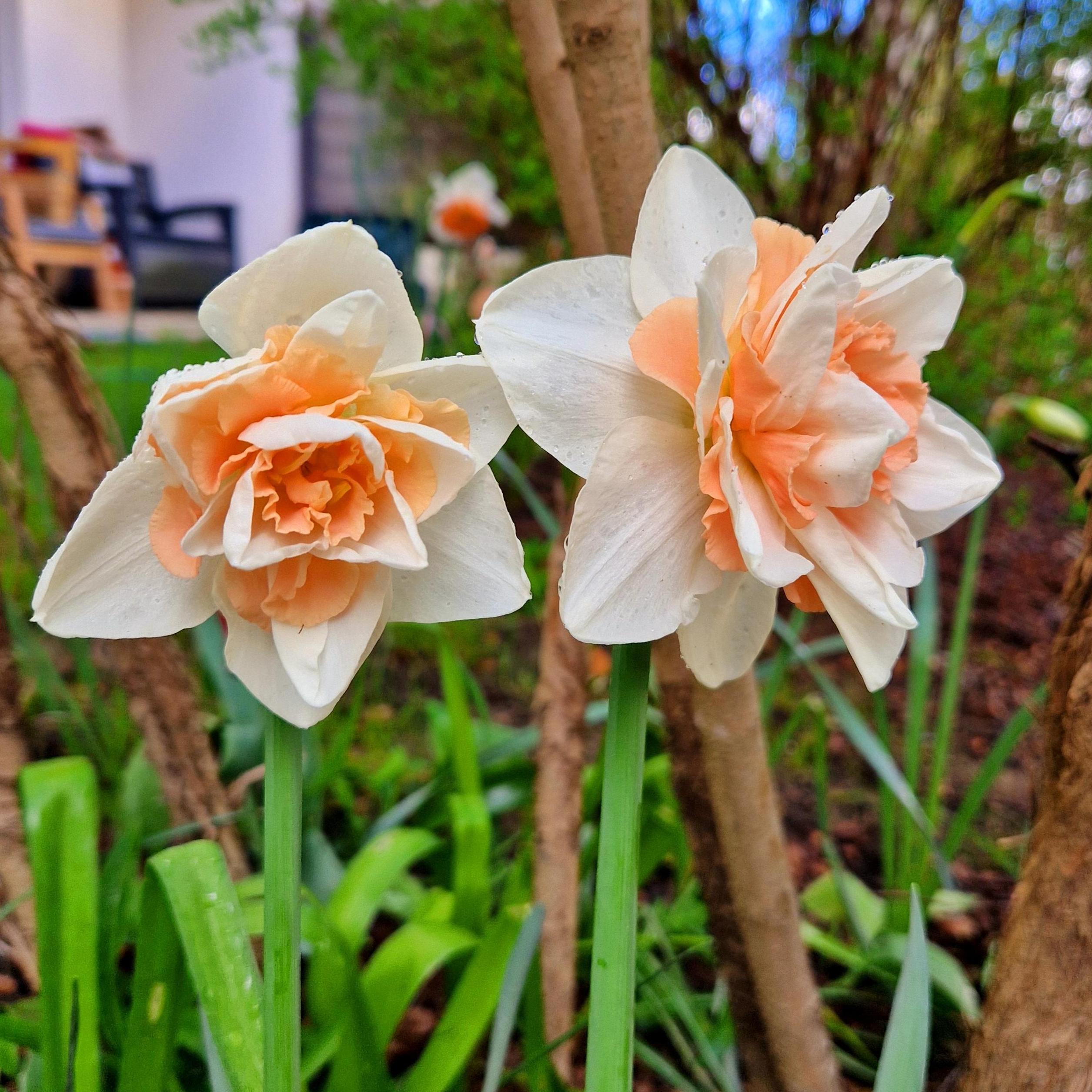 Daffodils bloom from March to May and come back every year. Very easy to grow, they can tolerate both the shade of woodland and a sunny flower bed. They prefer moist but well-drained soils. Plant them in autumn, 15cm (6in) deep and spaced 10cm (4in) apart. Group them in clusters of at least 5 bulbs, in patches of uniform colour or mixed.