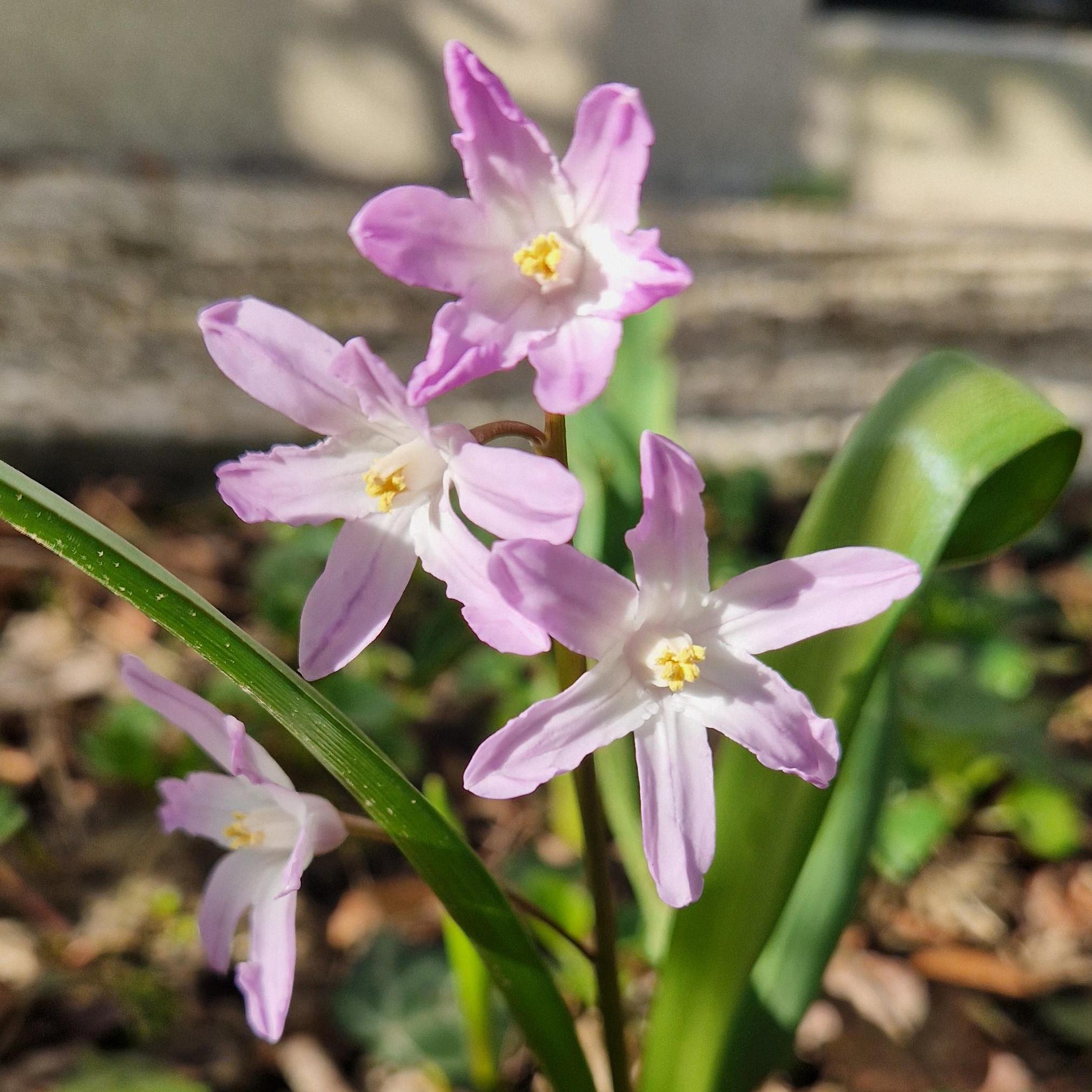 Pretty flower with a washed pink color. Chionodoxas are adorable early flowering bulbs that produce abundant flowers. Plant them in flowering carpets where you can mix them with hyacinths. They naturalise and multiply easily. Chionodoxas are also very interesting for use in pots.