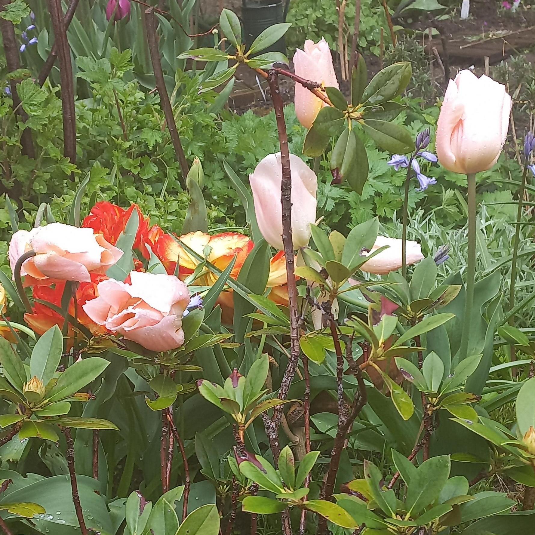 The colors are superb, all the bulbs have taken root, and the flowering is holding up well! Planted alongside the precocious and replete daffodils for a bed in peach tones, it's magnificent!
