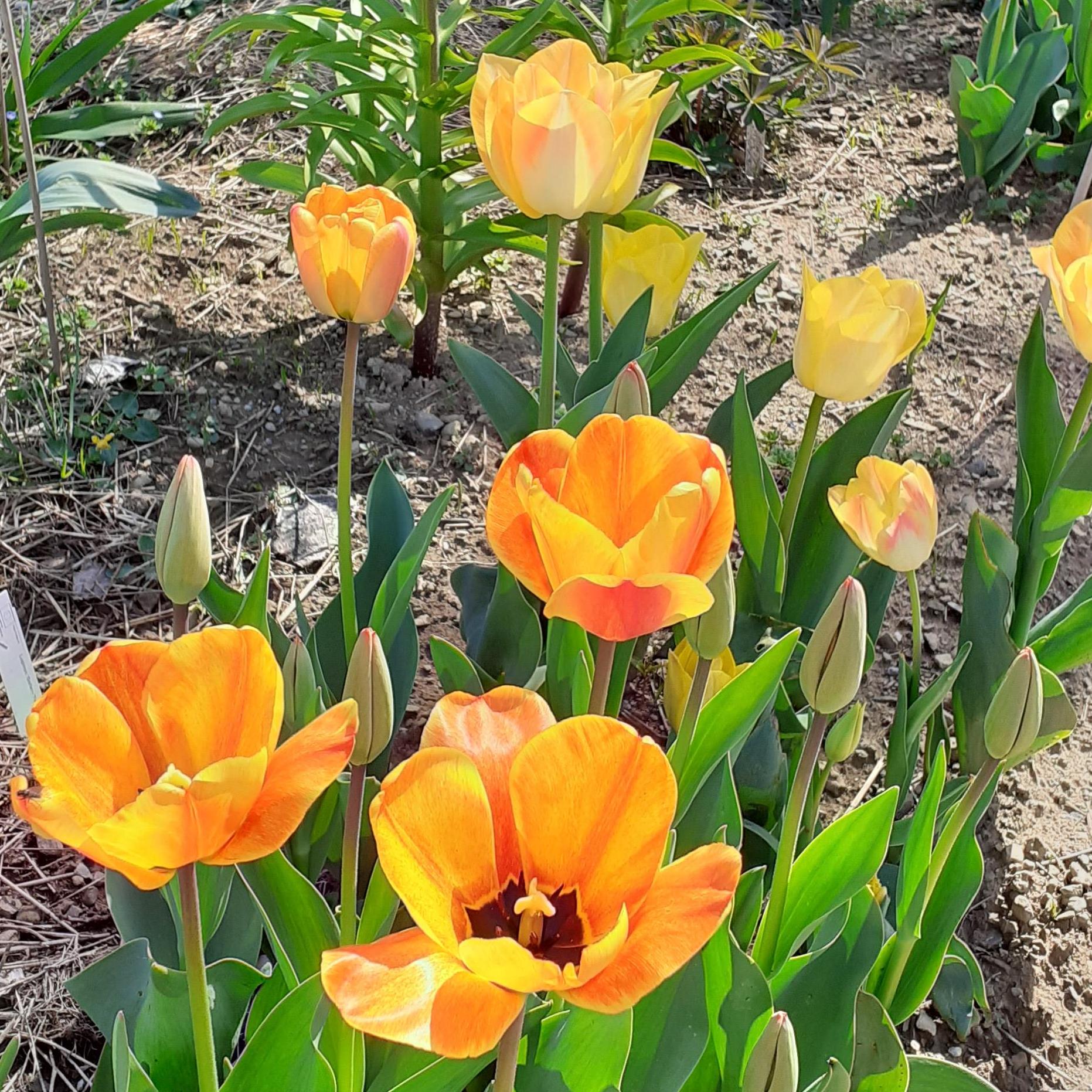 'Apeldoorn's Elite' is suitable for large borders, and of course, for bouquets. Combine it with daffodils, jonquils, hyacinths, alchemilla, Corsican hellebores, and euphorbia for stunning scenes. It can be planted in borders, rockeries, flower beds, pots and containers. This tulip looks great on balconies and terraces. It pairs perfectly with tall perennials. Use shallow water in your vase, just a little at the bottom is enough! If your tulips open too quickly, you can add two to three ice cubes to the vase each day.