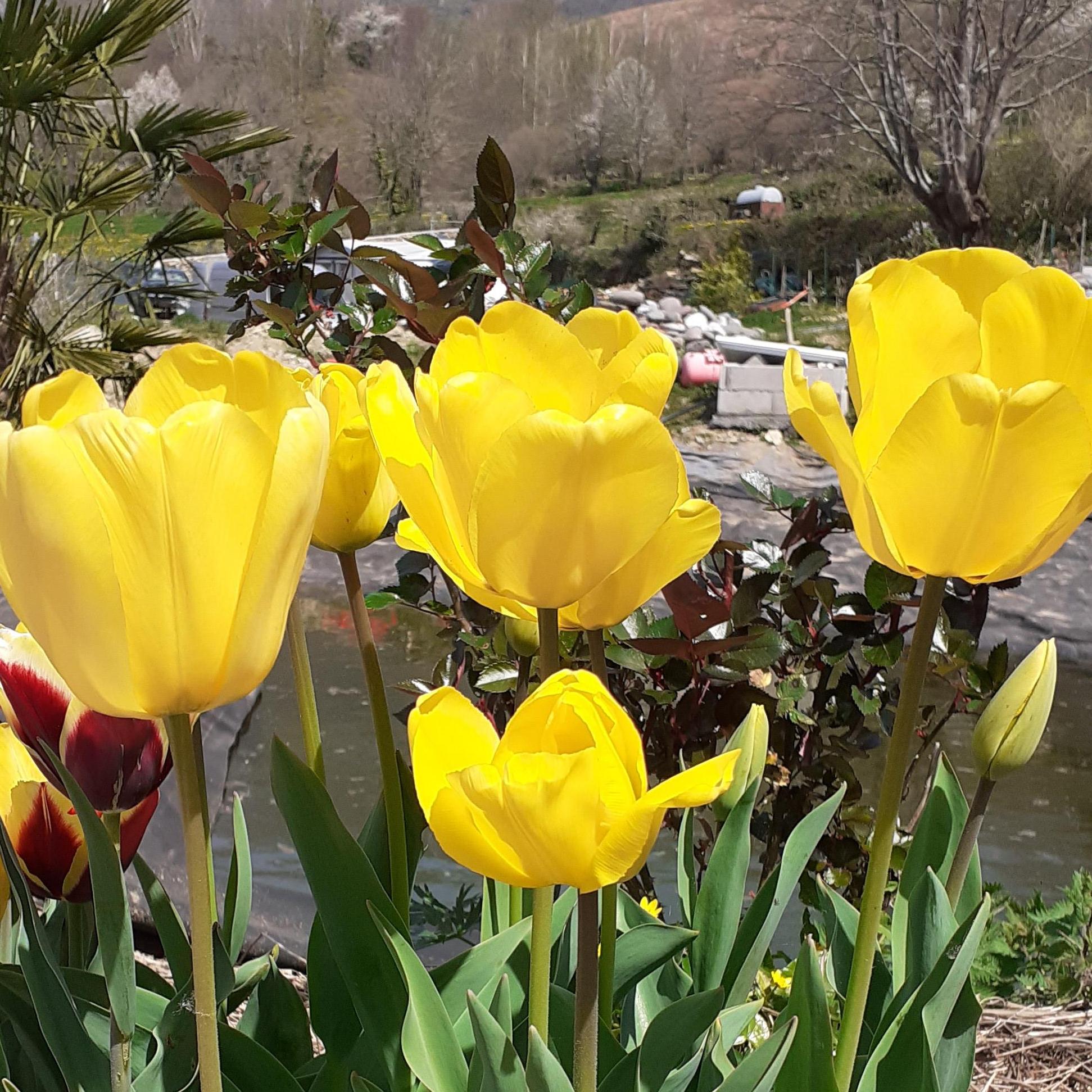 The radiant 'Golden Apeldoorn' Tulip finds its place at the back of large, rather monochrome beds or with white or red varieties, and of course in bouquets. Pair it with daffodils, jonquils, hyacinths, or even alchemillas, Corsican hellebores, and euphorbias, to create interesting displays. It can also be planted in borders, rockeries, flower beds, pots and containers. This tulip will be beautiful on balconies and terraces. It goes well with tall perennials. Put very little water in your vase, a covering at the bottom is enough! if your tulips open too quickly, you can add two to three ice cubes to the vase every day.