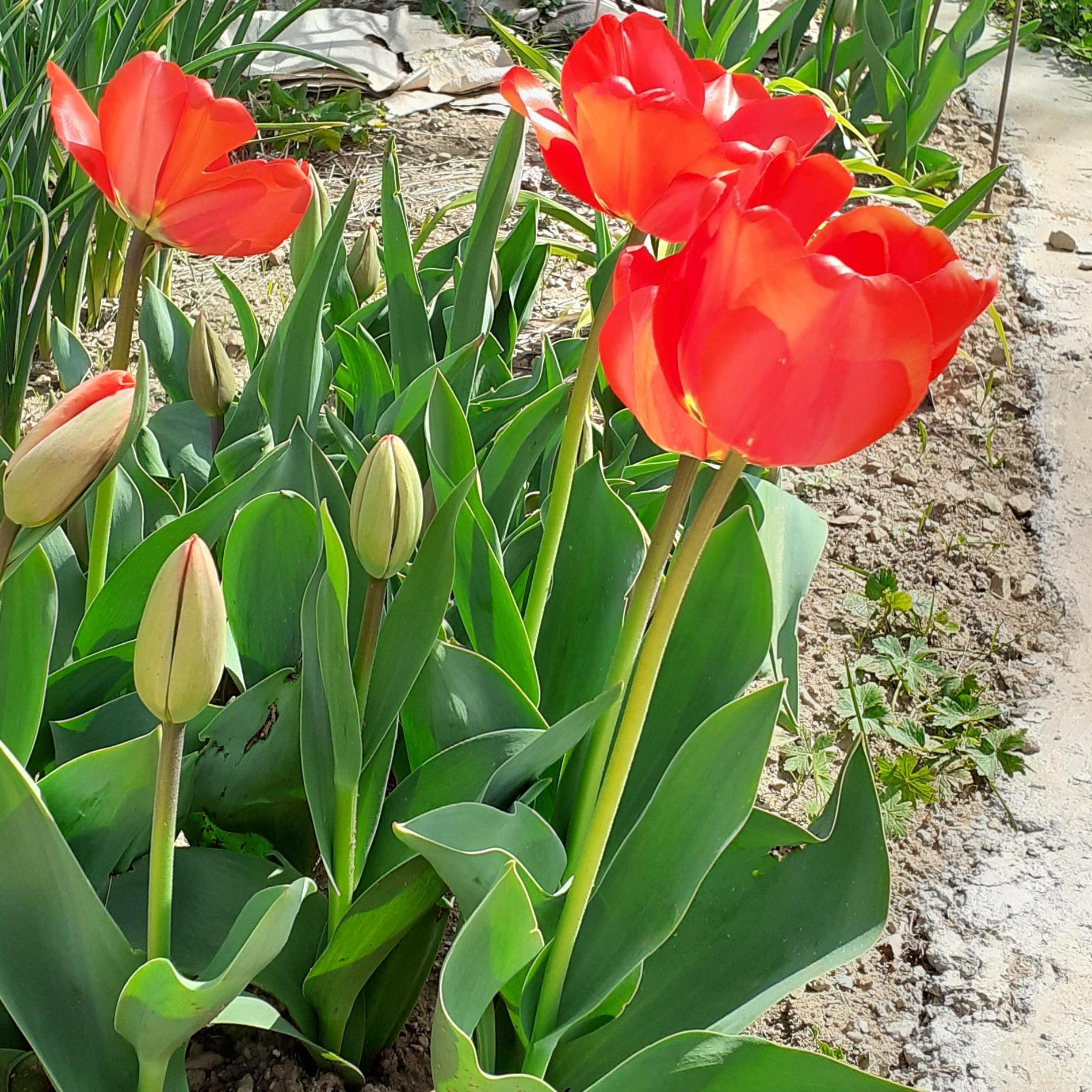 Plant the bulbs in autumn, from September to December, at a depth of 15 cm (6in), 10 cm (4in) apart in ordinary, slightly acidic, neutral, or slightly alkaline, loose, well-worked, and well-draining soil. Never add manure or poorly decomposed compost to the planting soil, as this could cause the bulbs to rot. The 'Red Impression' tulip will grow well in soil which is moist to dry in summer, in a sunny or semi-shaded location. Once flowering is complete, it is best to remove the seed head to avoid depleting the plant. However, the leaves should only be removed when they are completely yellowed and dried, as they allow the bulb to replenish its reserves and ensure its longevity.