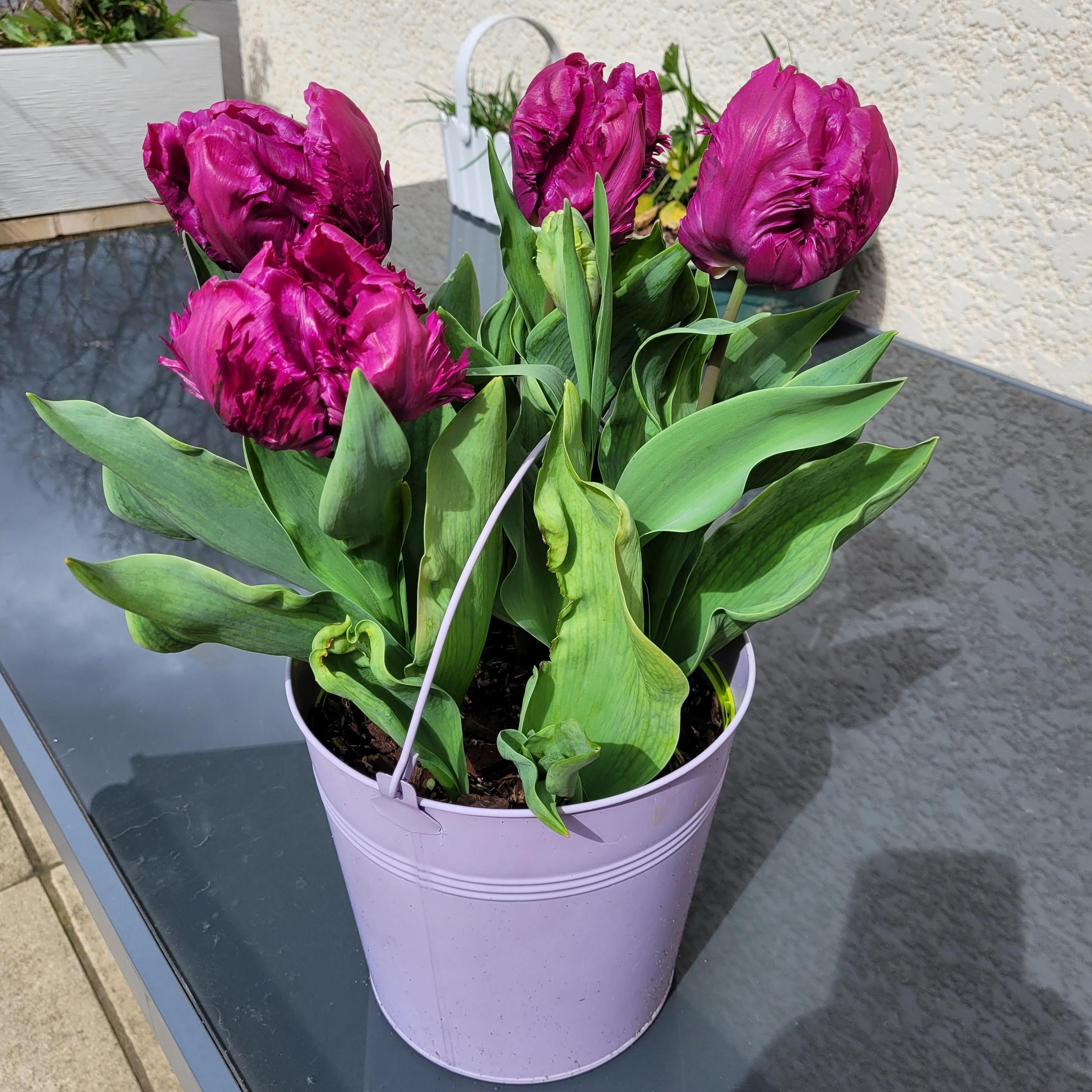 Parrot Group tulips are renowned for their rich colours, stunning and variegated flowers, and suitability in flower beds and bouquets. In the 18th century, they were considered monstrous. This group developed a lot in the 1930s, when it was discovered that irradiating bulbs with X-rays caused this mutation. They are unmatched for bringing the colours of spring to pots or sunny gardens. This tulip beautifully decorates balconies and patios. When designing your flower beds, you must consider the height and flowering period of the tulips, as these parameters can vary significantly from one cultivar to another. It is wise to plant extra bulbs for bouquets, as they make superb cut flowers that last a long time in a vase.