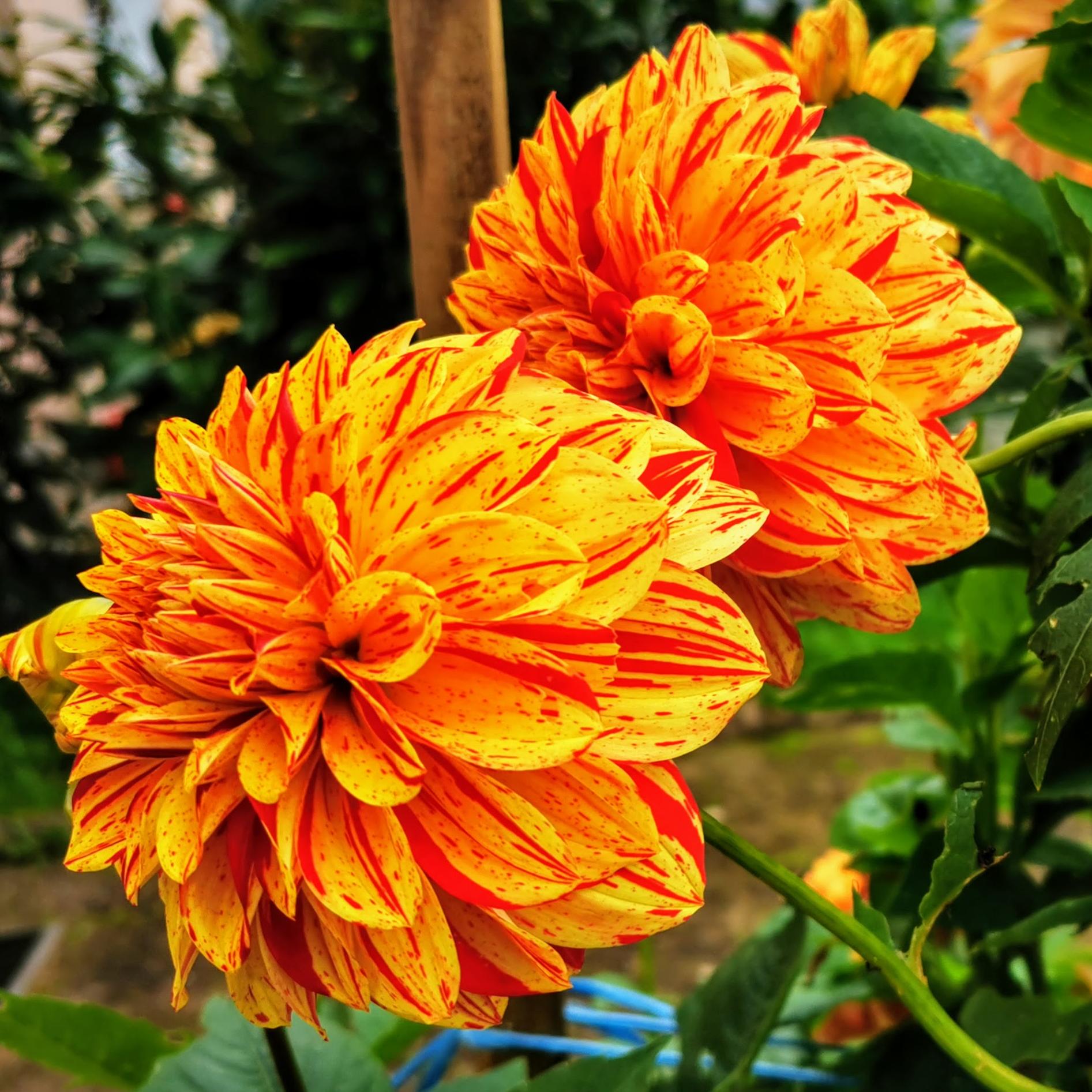 Dahlia 'Lady Darlene' is a widely acclaimed variety. It bears giant yellow flowers with magenta tips. The majestic blooms measure up to 22cm (9in) in diameter.