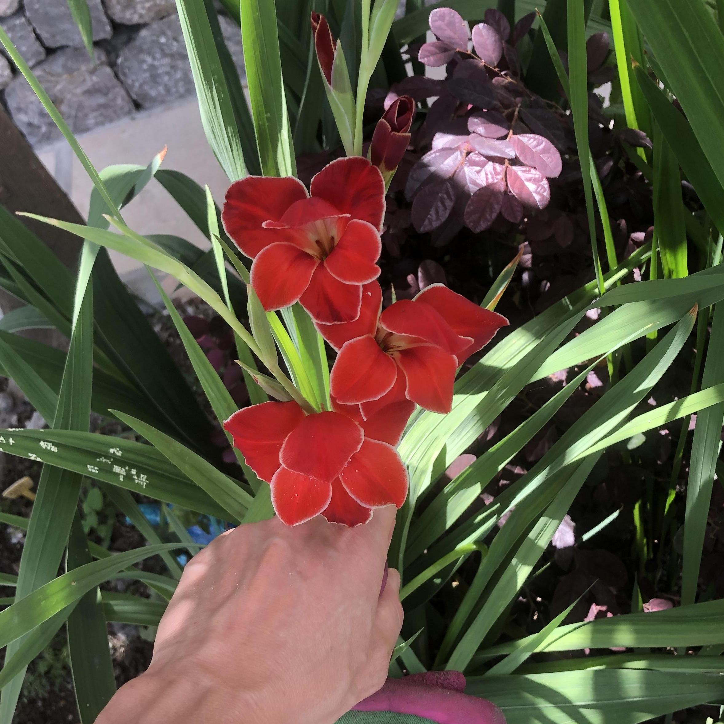 Gladiolus 'Claudia' is a dwarf variety that is easy to grow. It can remain in the ground during winter if protected by a good mulch. At the end of spring, it produces spikes adorned with bright red star-shaped flowers with decorative yellow streaks. With a more natural appearance than the classic tall hybrids that can look a bit stiff, this variety easily integrates into a mixed border. It looks wonderful alongside perennials or low-growing bushes.