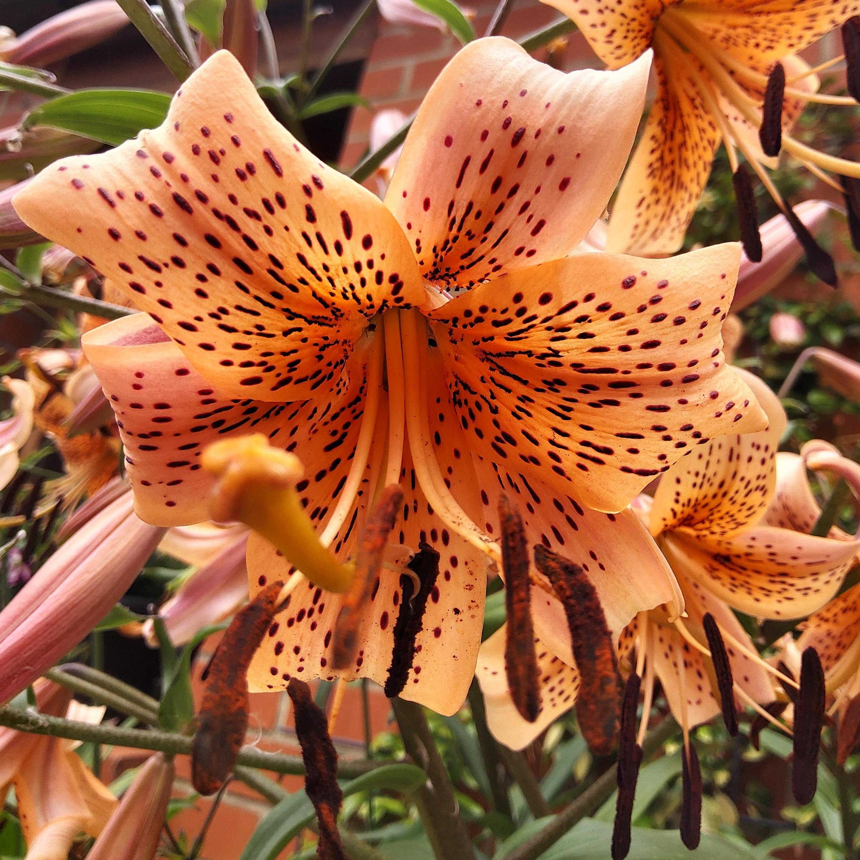 'Salmon Tiger' thrives in humus-rich soil and does not like limestone soils, ensure good drainage as it does not like heavy soils either. Plant it in full sun or partial shade, preferably in spring or October, with the bulbs 15 cm (6in) deep in a pocket of soil mixed with leaf compost. Surround them with a layer of sand to prevent rot and slug attacks, while allowing them to grow more easily. Mark the planting location, as the vegetation only starts in April. Stake the stems when they reach 30 cm (12in) high. If red lily beetles appear, treat them immediately, as their larvae can devour all the leaves. The most effective method is to catch them by hand, but be careful as they drop as soon as you touch them. After flowering, it is a good idea to cut off the faded flowers halfway to keep the bed beautiful during summer. Your lilies will be available from early October; plant them as soon as you receive them. This lily is also suitable for container gardening. Plant 1 to 5 bulbs in a deep pot, water them a little and place your pots in a frost-free location. Bring them out in spring and enjoy their beauty on your terrace!